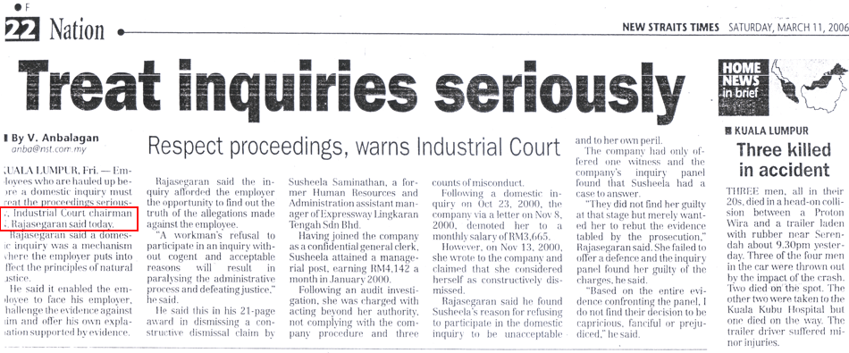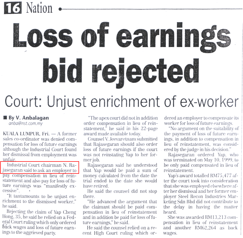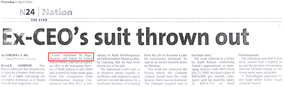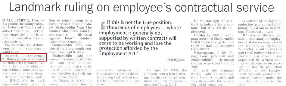 Please click to view some of the news headlines on Dato' N. Rajasegaran's judgments.